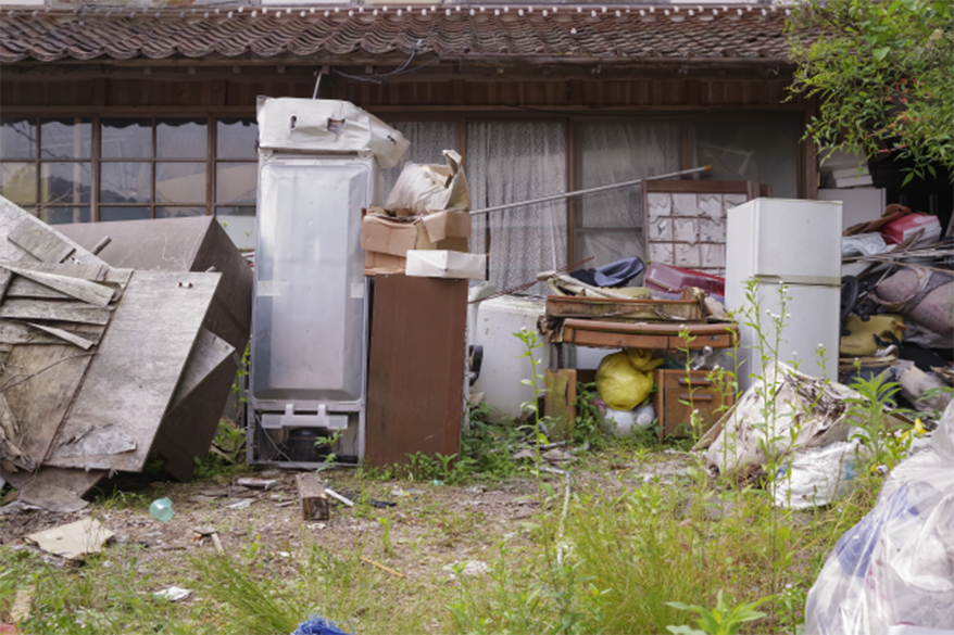 また、空き家への不法投棄の件数は増加傾向にあり、近隣住民をはじめ地域社会において深刻な問題となっています。適切に管理されていない空き家は、ゴミを不法投棄されるリスクが高くなり、地域社会や環境に多大な影響を及ぼします。多くの場合は、小規模なゴミの投棄からはじまります。しかし、そのまま放置されると外部からゴミが見えるため「ここはゴミを捨ててもよい場所」と認識されてしまい、さらにゴミを不法投棄されるという悪循環に陥ります。多くのゴミが空き家の敷地内に山積みの状態になり、やがて「ゴミ屋敷」と呼ばれるようになると、地域の景観を損ねるだけでなく、悪臭を放って衛生状態の悪化にもつながります。問題が大きくなる前に、まずはお気軽に弊社へご相談ください。